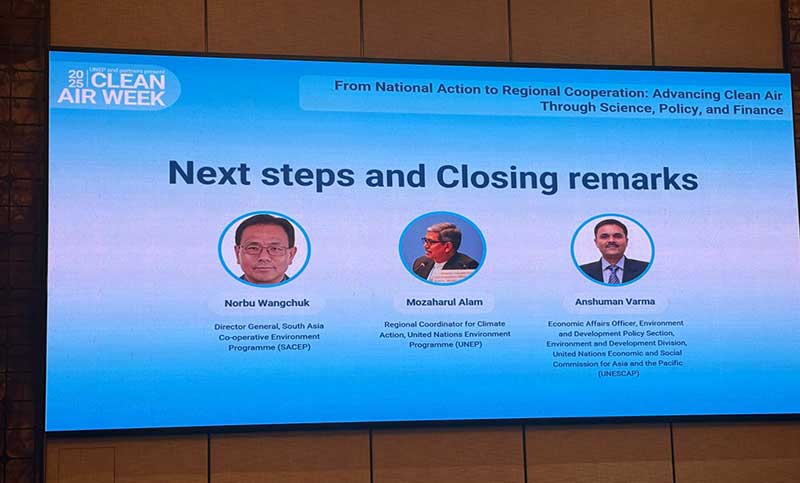 Representing the South Asia Co-operative Environment Programme (SACEP), Mr. Wangchuk emphasized the organization’s mandate as an intergovernmental body promoting regional environmental cooperation. Mr. Wangchuk reaffirmed that SACEP will continue to work closely with ICIMOD, UNEP, UNESCAP, and regional partners to advance cleaner air, healthier communities, and climate resilience across South Asia.